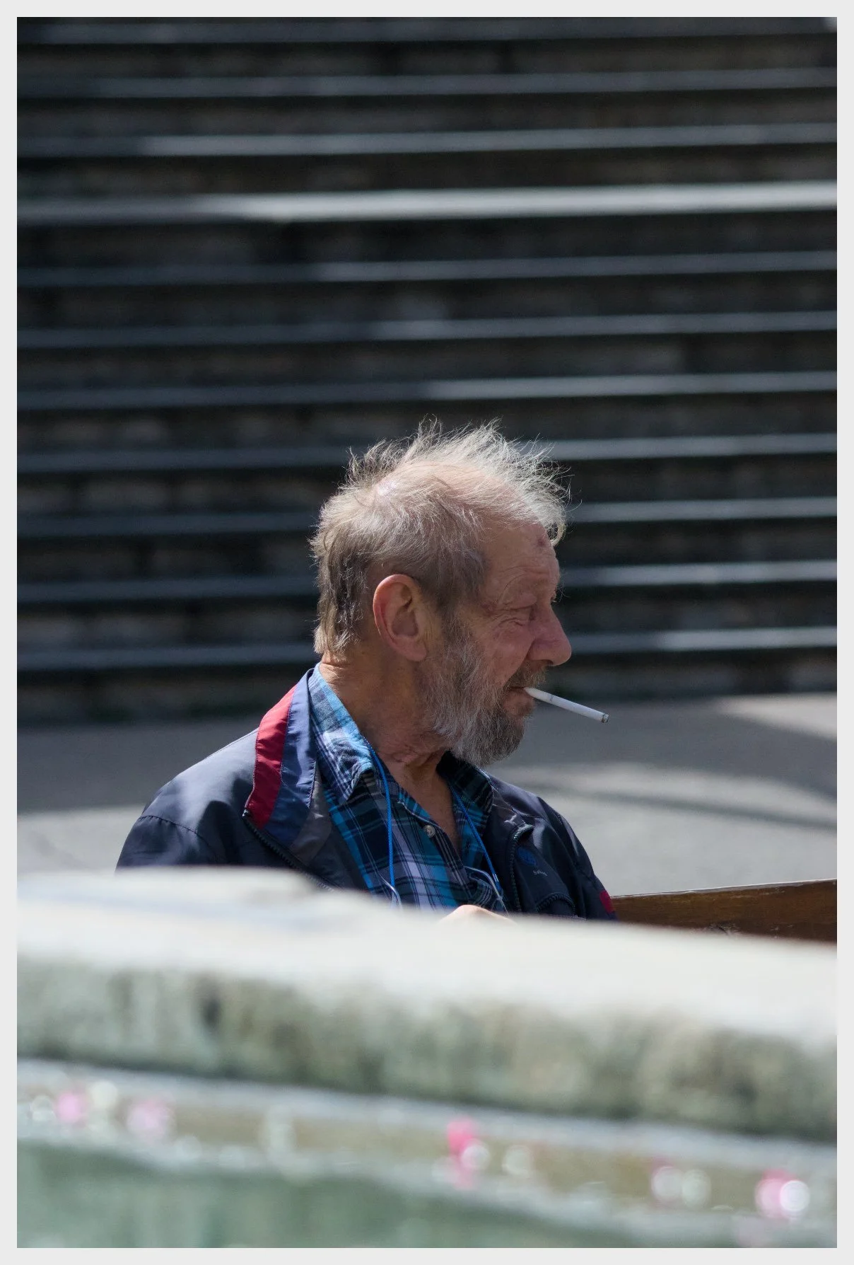 Raising the filter to his lips, he closes his eyes briefly, as if savoring a momentary peace that depends on nothing but the next inhale.