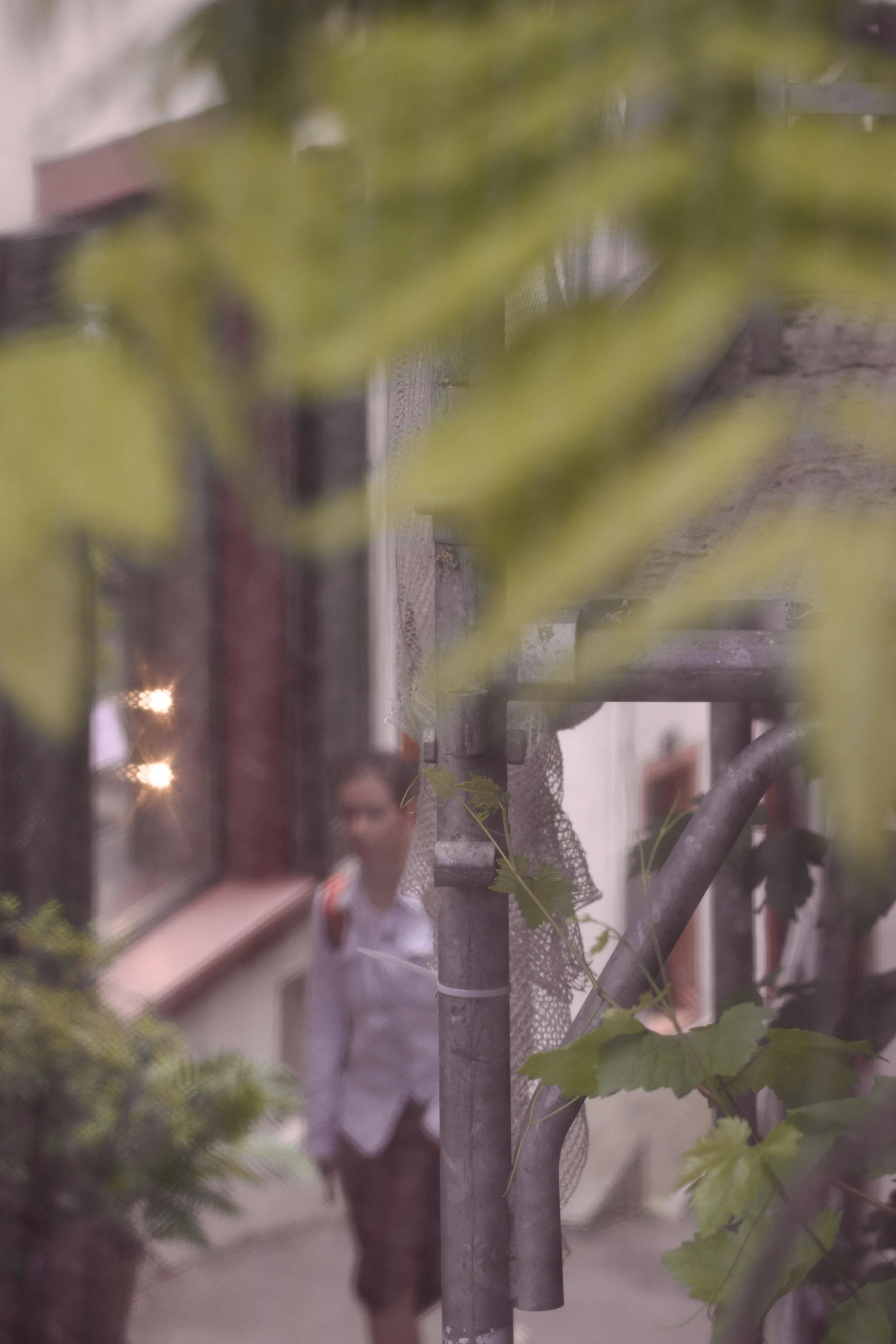 His eyes wander beyond silent steps and passing faces, each movement in the world a distant echo of his own internal dialogue.