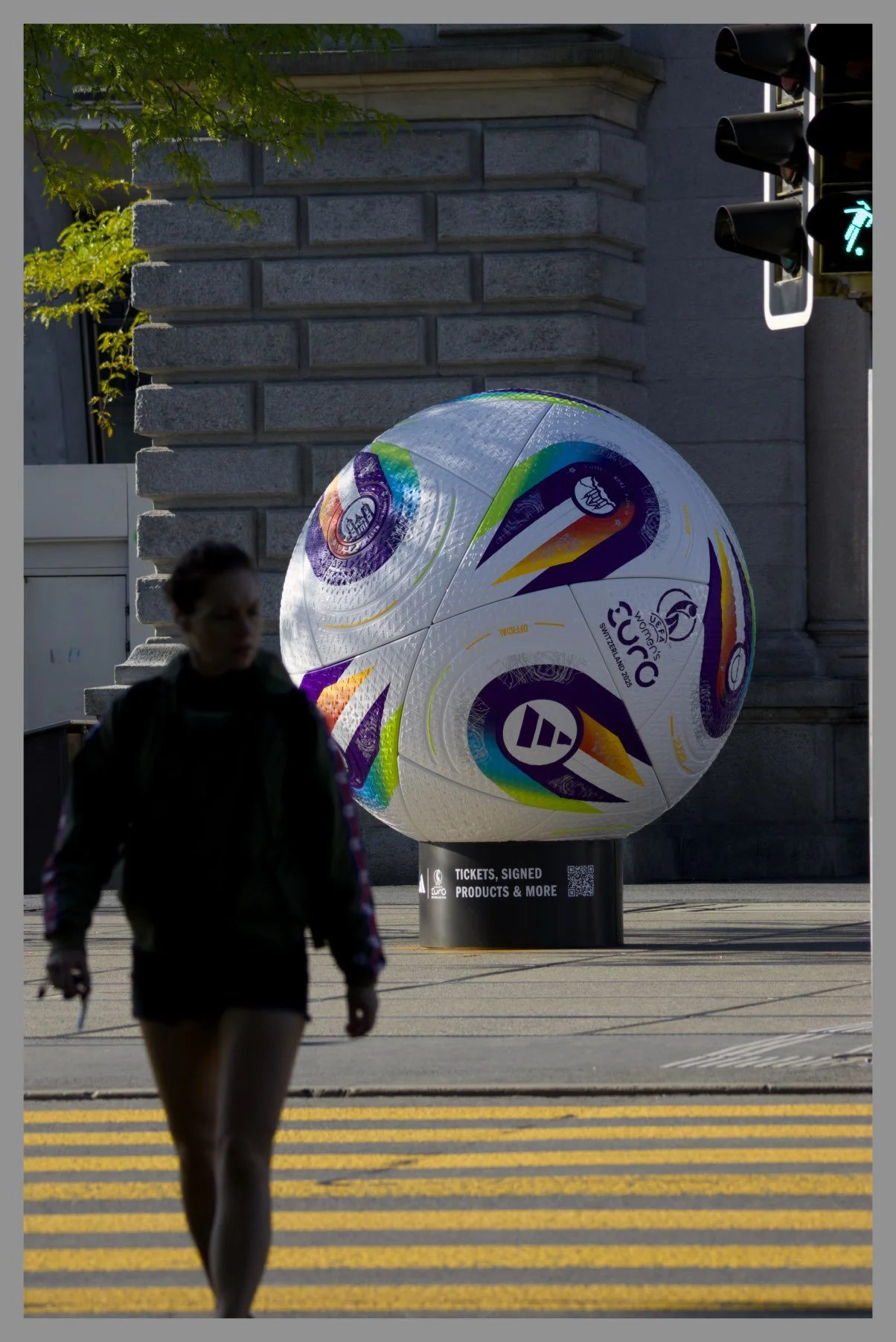 Thing’s gold unravels her boundaries—feet nearly lost in a pale shimmer, ambition ghosting into atmosphere. Her stride dissolves into the fading frame, the ball a quiet witness at her back: triumph rendered ephemeral, visibility as fleeting as the light—each step a question of how fully she is allowed to appear, how easily she is written back into shadow.